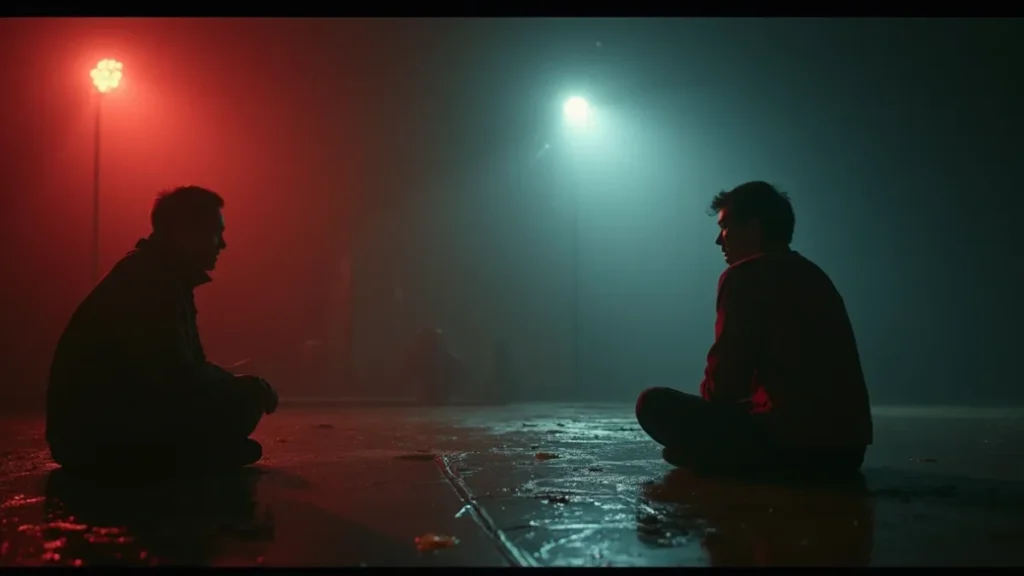 O ponto de partida é simples: um personagem que representa o palhaço enfrenta um conflito interno que vai sendo mostrado aos poucos. A história não depende de eventos espetaculares para funcionar. Em vez disso, o roteiro trabalha com situações reconhecíveis do dia a dia.